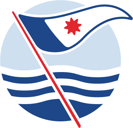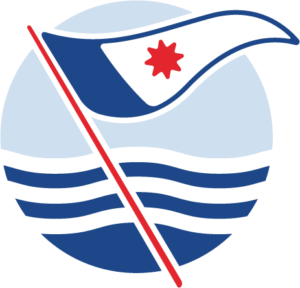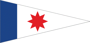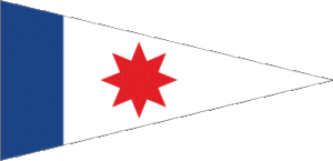 - hinten oben (in der Abbildung oben rechts) unser Wimpel mit Windrose in den Vereinsfarben blau-weiß-rot;